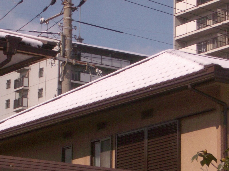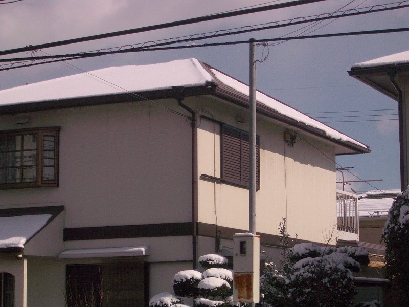 屋根の雪が緩んで融けだしています。 アルメットルーフィンクは、屋根から雪が落ちません。 平板スレートの屋根、瓦葺きの屋根からは、屋根から雪が落ちています。 屋根から雪が落ちて、軒樋や軒先の下にある庇屋根や草木を傷めることがあります。