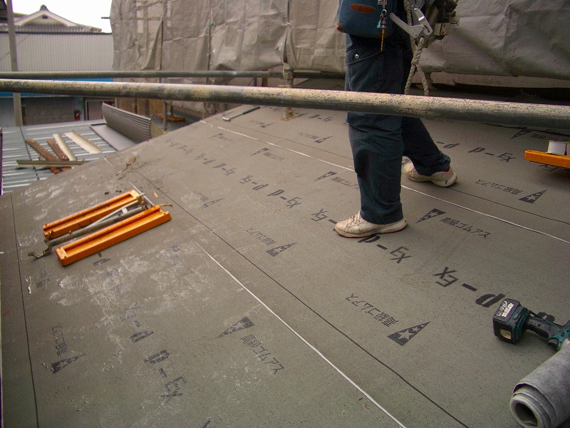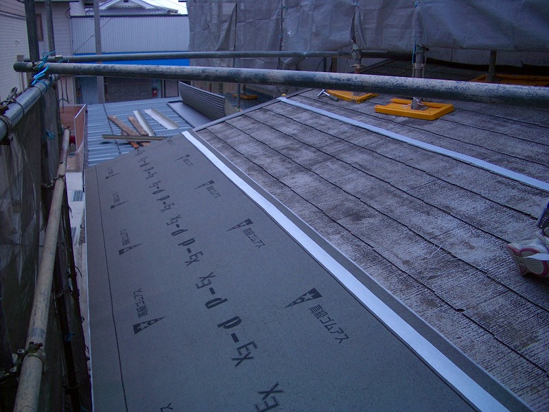 屋根のリフォーム 下葺き材は、ゴムアスルーフィングを施工 ずれないようにブチルテープにて施工しました。 屋根裏の調査をしました。 下地(合板)は、漏水もなくしっかりしています。 お問い合わせは・re.araki@deluxe.ocn.ne.jpまで、