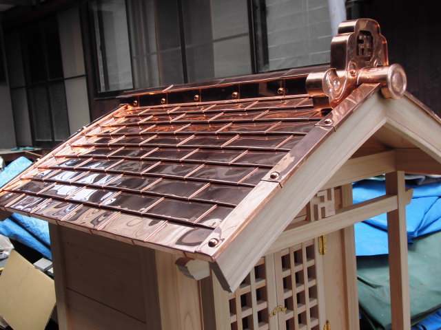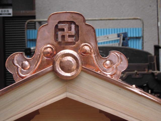銅版一文字葺きにて施工・・・鬼を加工・巴も加工