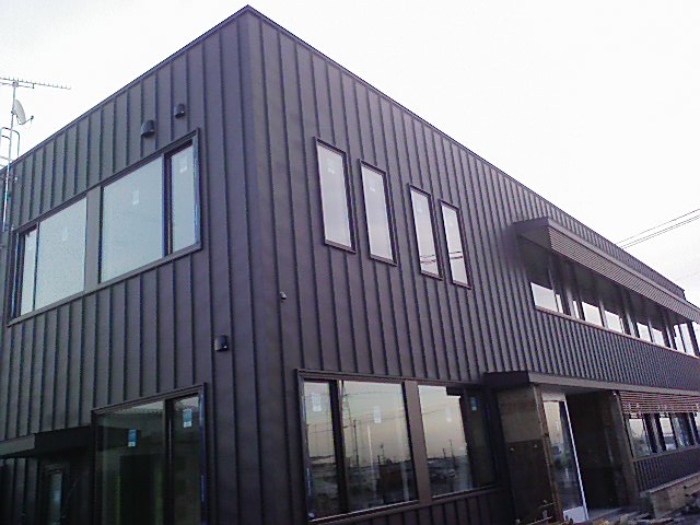 屋根はハゼ式折版、壁に立平を貼りました