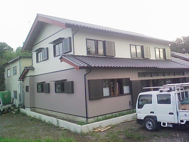1Fと2F色分けして鉄板サイディング張りました
