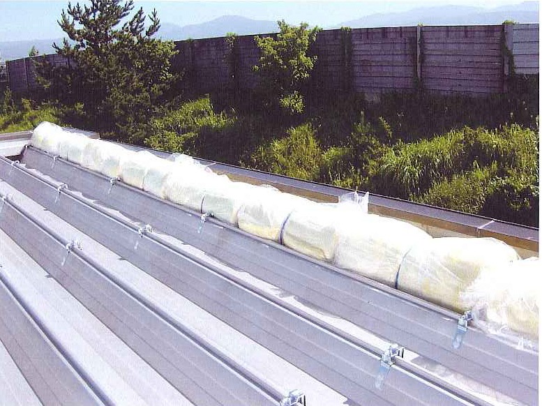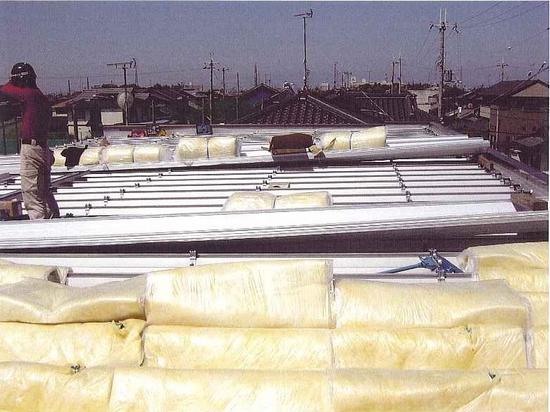 既存の屋根の上に断熱材を敷き更に屋根を葺きました