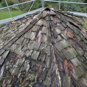 六角屋根 木製屋根→めくって→横葺き<ガルバニウム鋼板黒色>