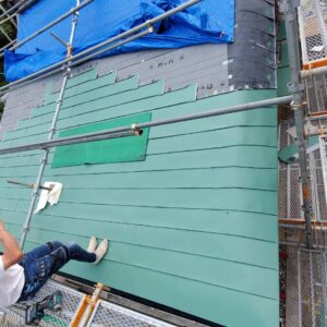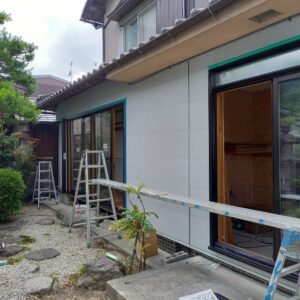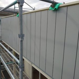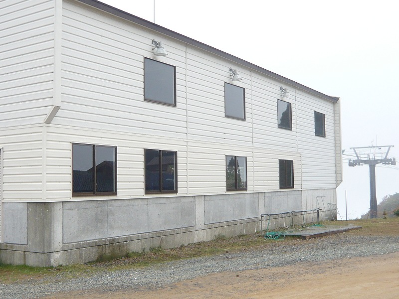 高島市今津町箱館山に登頂しました 箱館山スキー場のゴンドラ駅外壁増築工事です。 ガルバニウム鋼板0.5mm角波サイディングを横張りしました。 工事は濃い霧の中での作業でした。 既設との取り合いは、水切を入れることで調整しました。 天気のいい日は眺めは最高ですよ! <担当・松田、志村>
