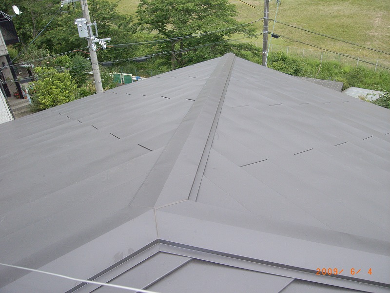 屋根材はセキノ興産・断熱トップ、快適横段15を使用しました。