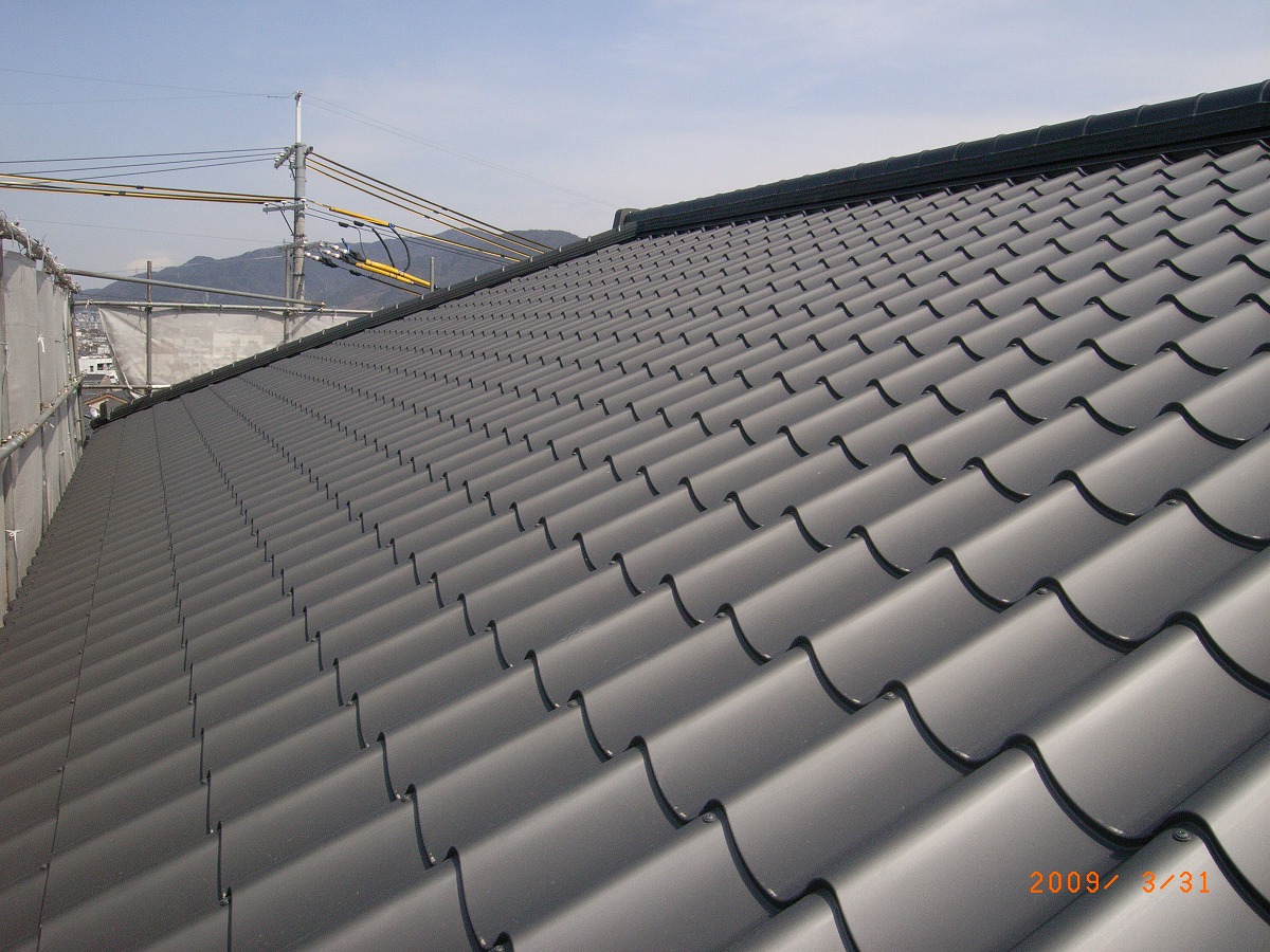 本物の瓦に比べて1/10の重量で済む分、建物への負担を軽減し免震に効果があります。
