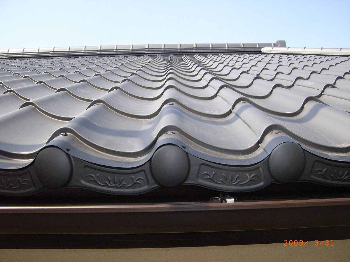カラーガルバリウム鋼板で本物の瓦のように成型した製品です。