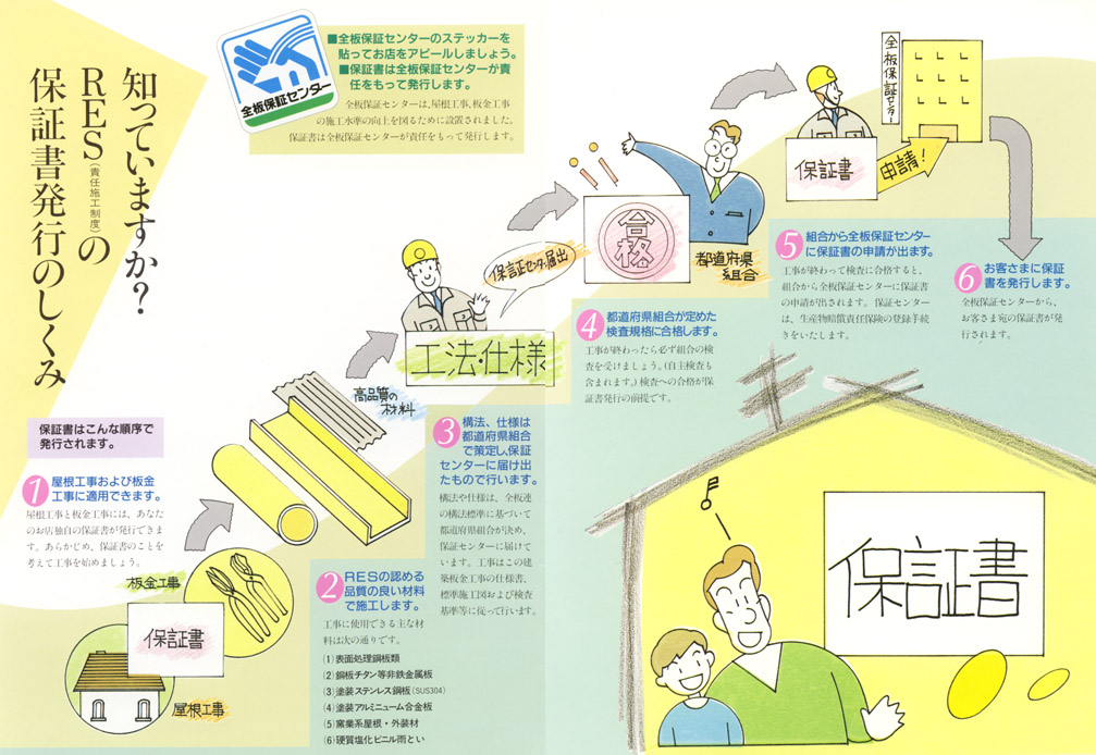 昨今世間をにぎわしている「欠陥住宅問題」。悪徳リフォーム業者による手抜き工事や耐震偽造問題など本当に安心して工事を任せることが出来るのかということが多くの方の悩みになっています。当社は地域に密着した建築板金業者ですから、安心してご用命がいただけます。雨漏れや強風からの飛散、地震から生命を守る為に、又、皆様の家を守るプロフェッショナルとして、実際に施工する立場から工事の品質基準を作り、皆様からご依頼を頂いた工事を確実に施工する「責任施工制度」を昭和59年という早い段階から実施しています。損害保険に関しては全国組織の全板保証センターが行っております。それにより普通では出来ない金額で保証を行え、お客様への負担は一切おかけせずに保証書を発行します。 |